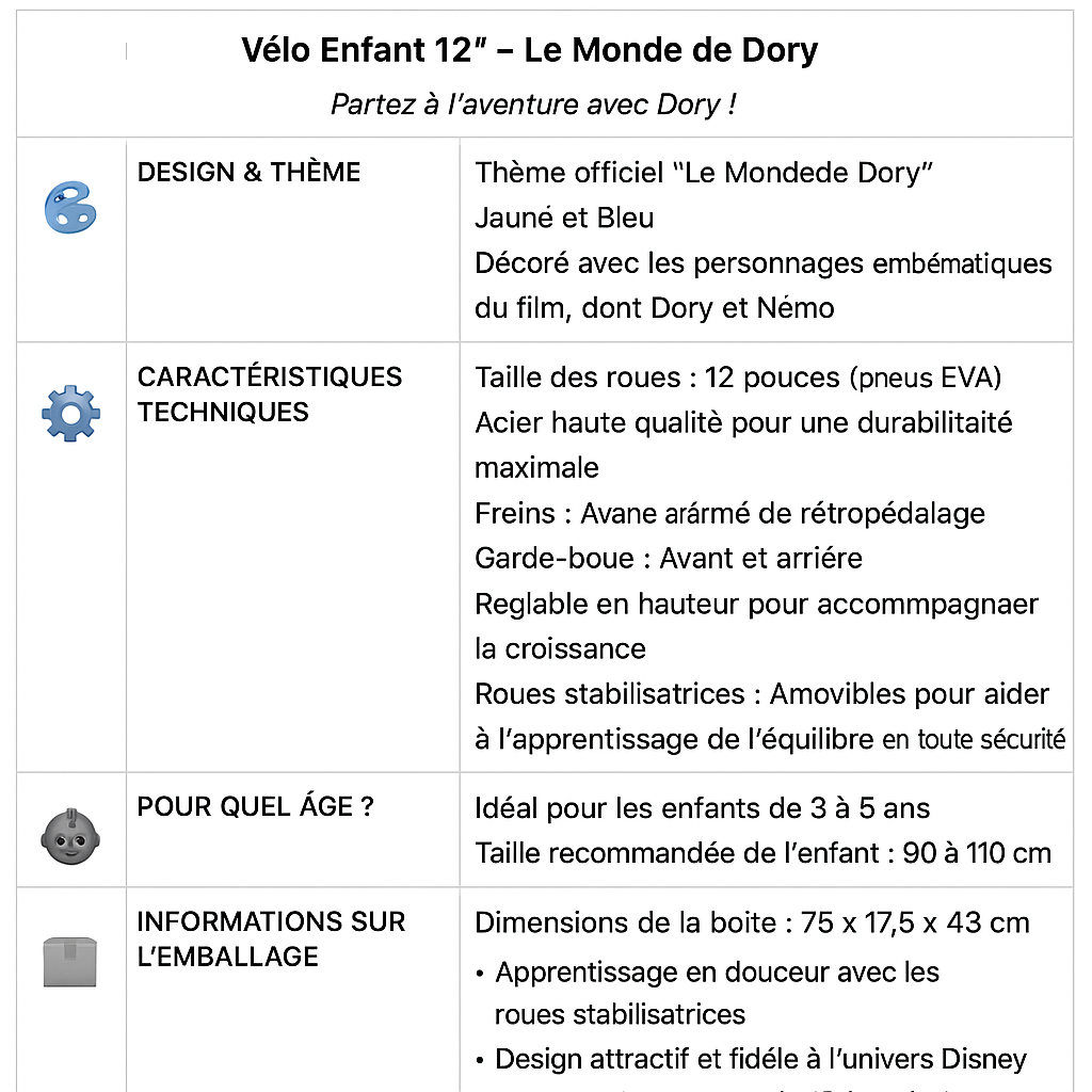 MONDO - Vélo 12’ entièrement décoré aux couleurs de DORY - Le cadre en acier. Pneus EVA avec roues de 10 pouces. Direction et pédalier en nylon avec système de rétropédalage. Garde boue - Sécurité : 2 roues de stabilisations arrière - Freins - Fille - A partir de 3 ans - Livré à l'unité